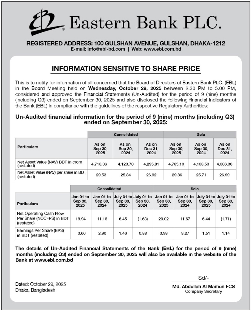 নিজস্ব প্রতিবেদক | বুধবার, ২৯ অক্টোবর ২০২৫ | প্রিন্ট | ২০৮ বার পঠিত | পড়ুন মিনিটে